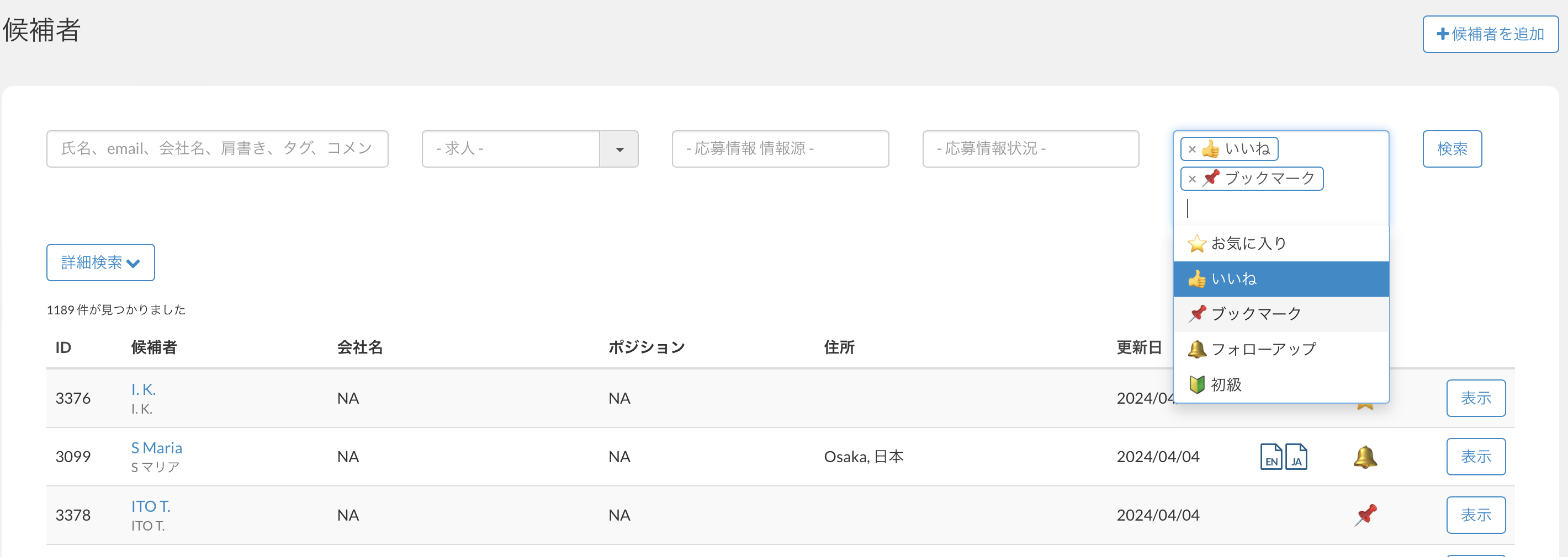 候補者の分類と管理のプロセスをよりわかりやすくするために、お気に入りの候補者のプロフィールに「バッジ」を割り当てる機能が追加されました。