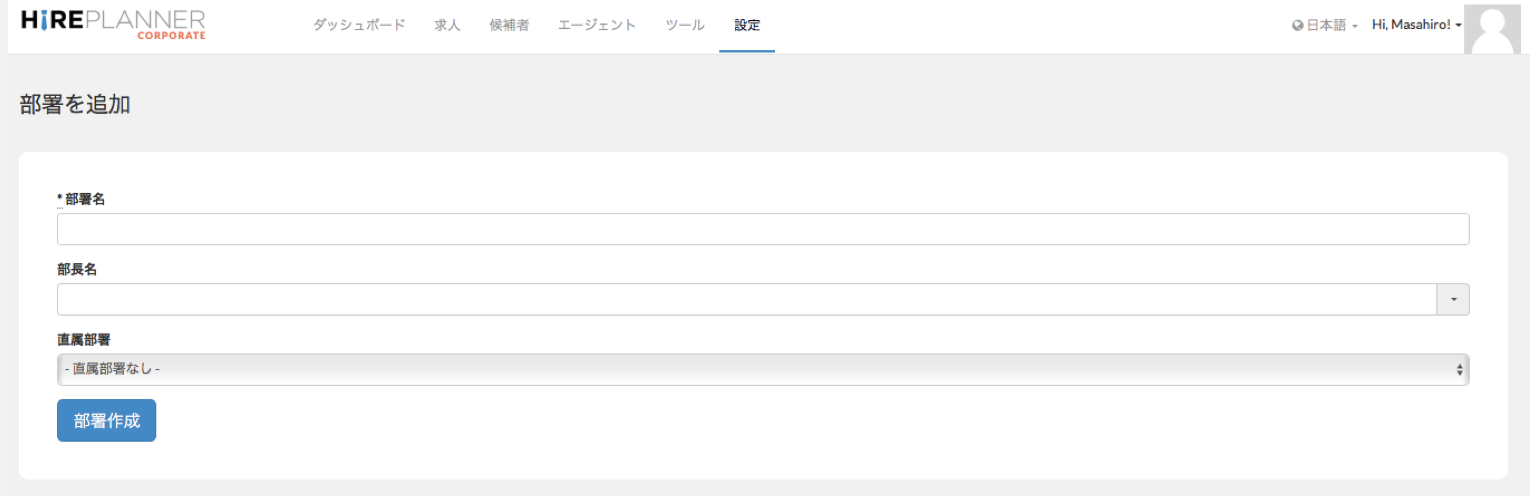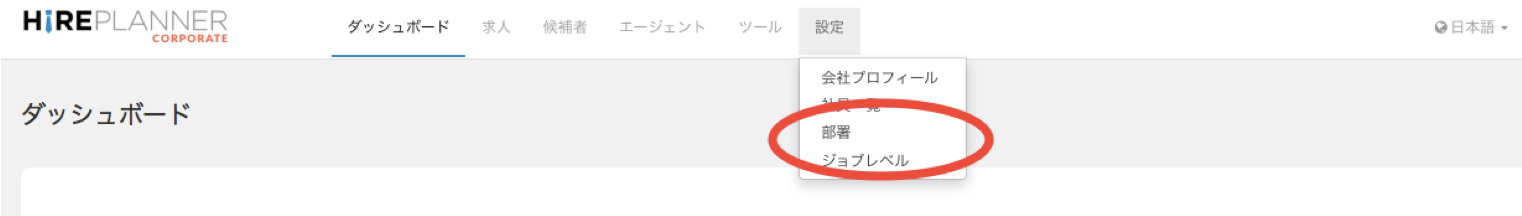 「部署」の設定は、基本的には会社の組織図を同じです。人事部以外の部署は、自分の部署より下に位置する部署の求人を閲覧することができます。どの部署がどこまで閲覧して良いのか、決定した上で慎重に設定してください。