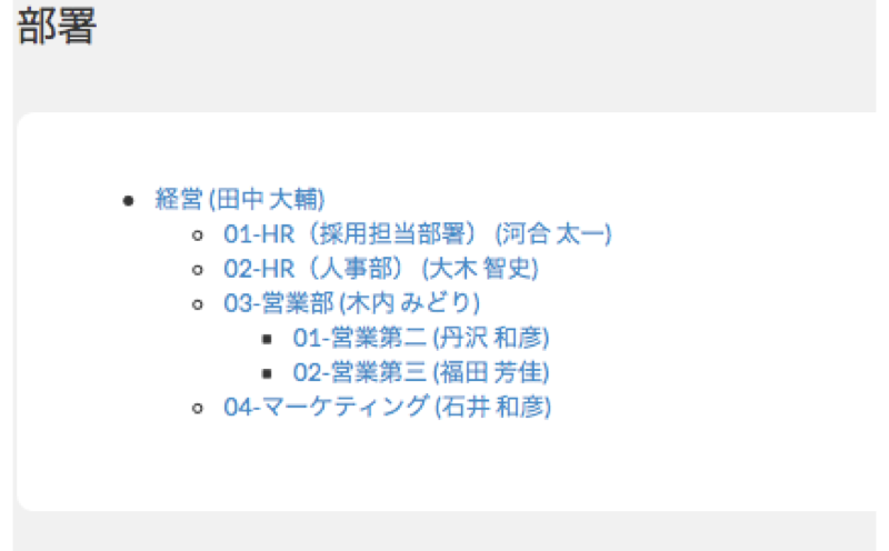 例)営業部の中に「営業第二」と「営業第三」がある場合