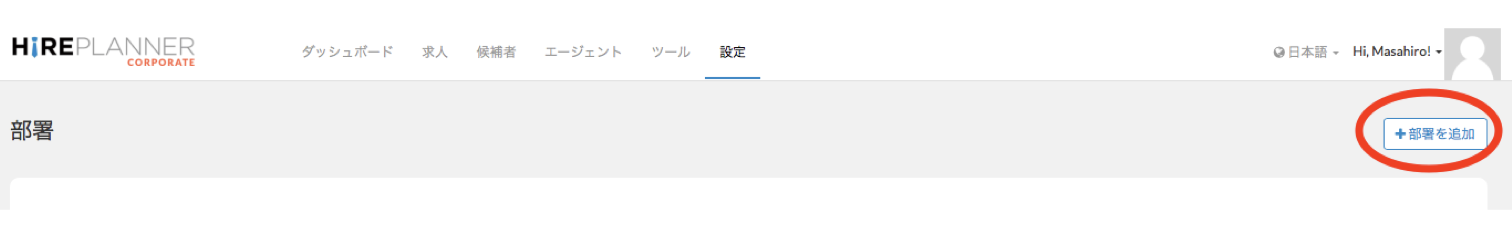 画面右上の「+部署を追加」ボタンをクリックしてください。
