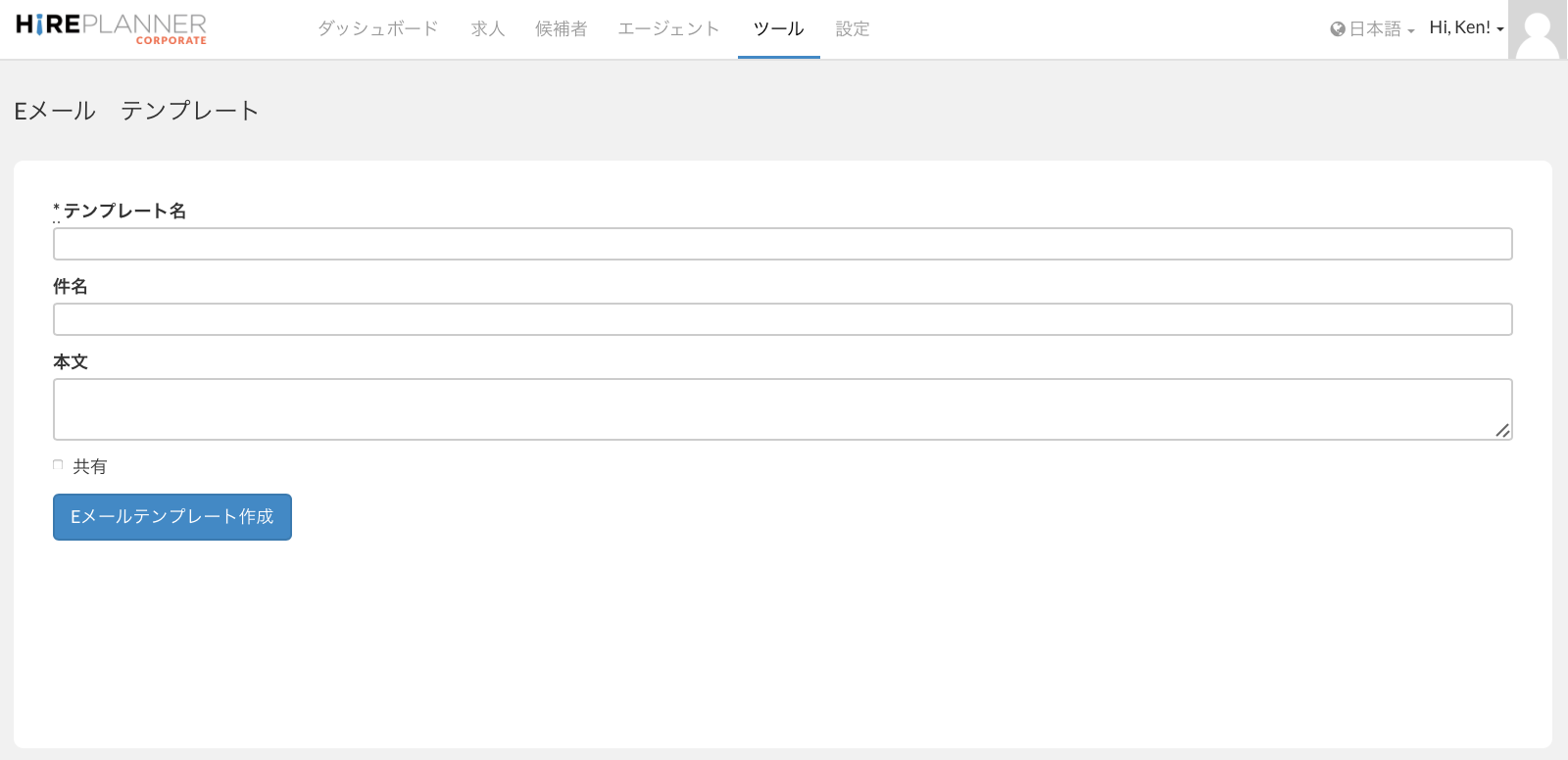 4. 「Eメールテンプレート作成」ボタンをクリック