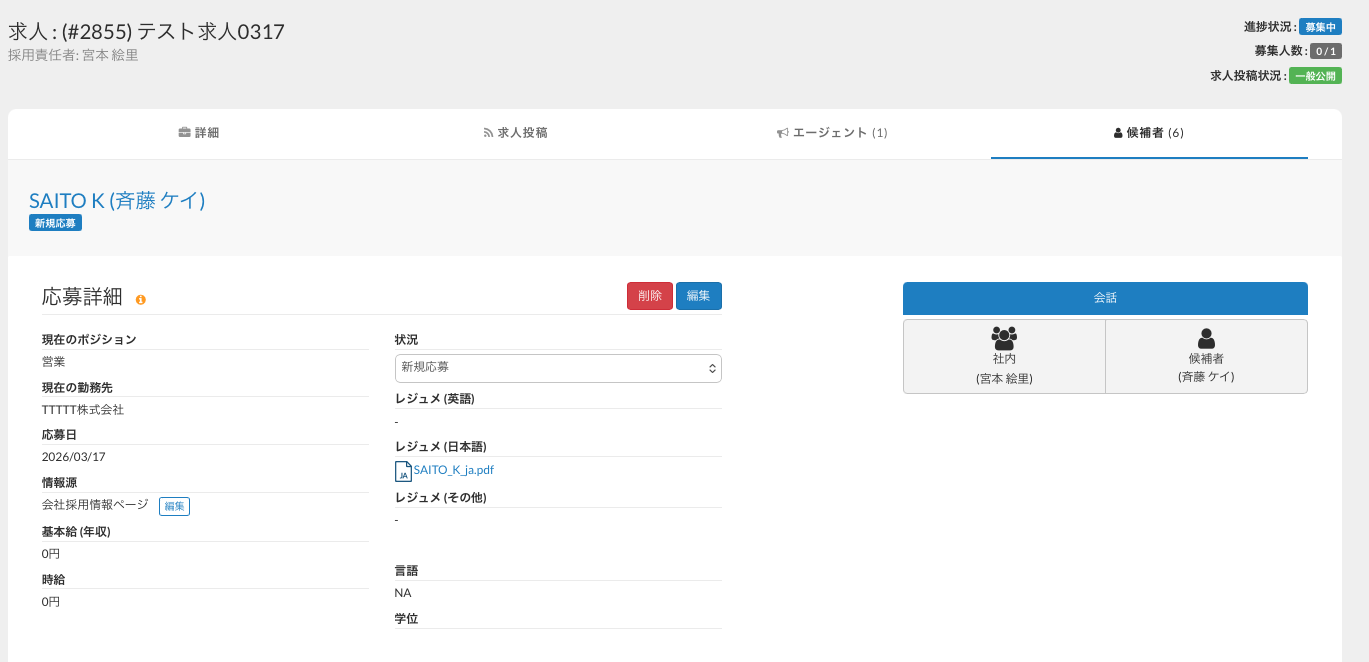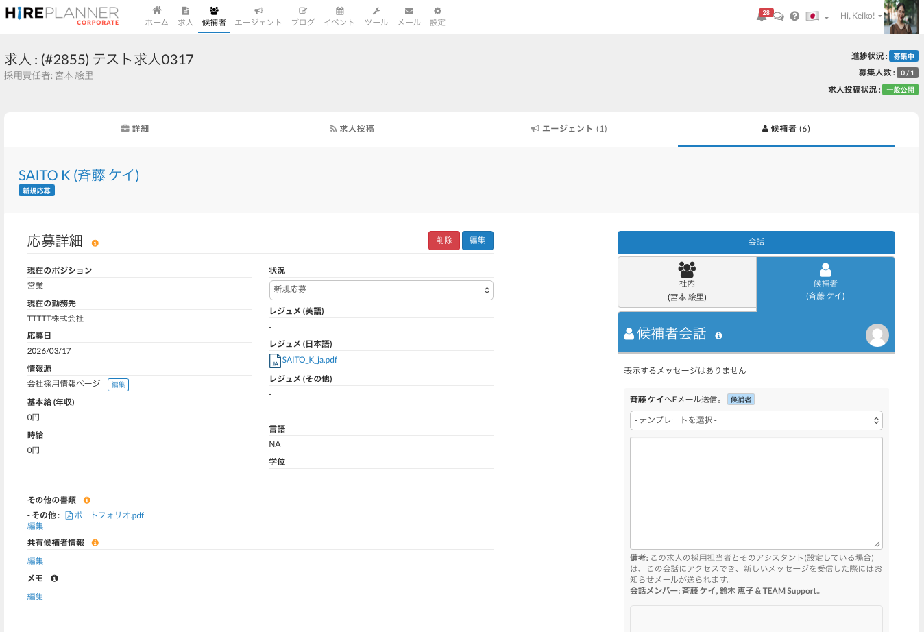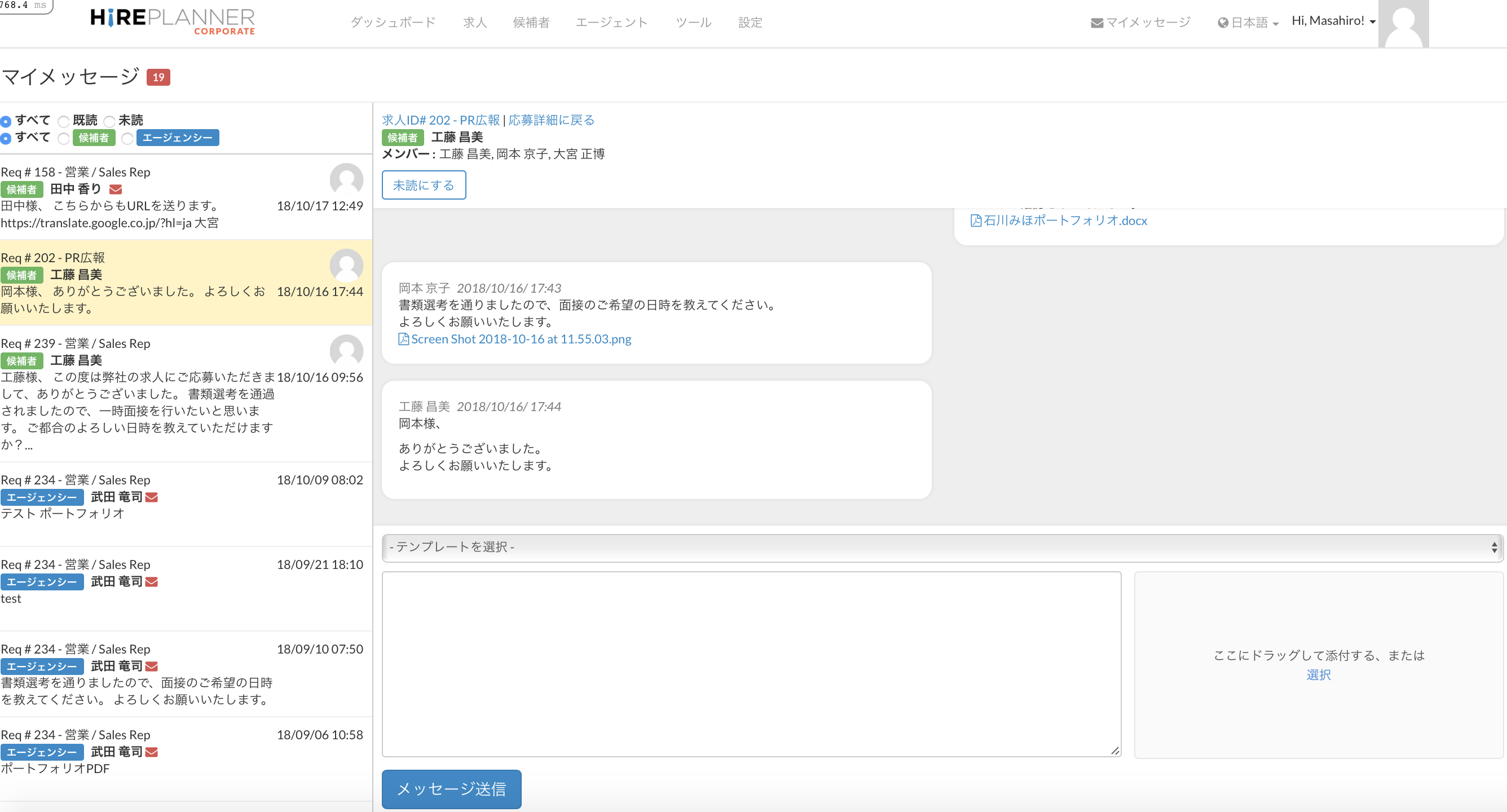 候補者とのメッセンジャーの利用方法(会社ホームページまたは求人サイトから直接応募者)