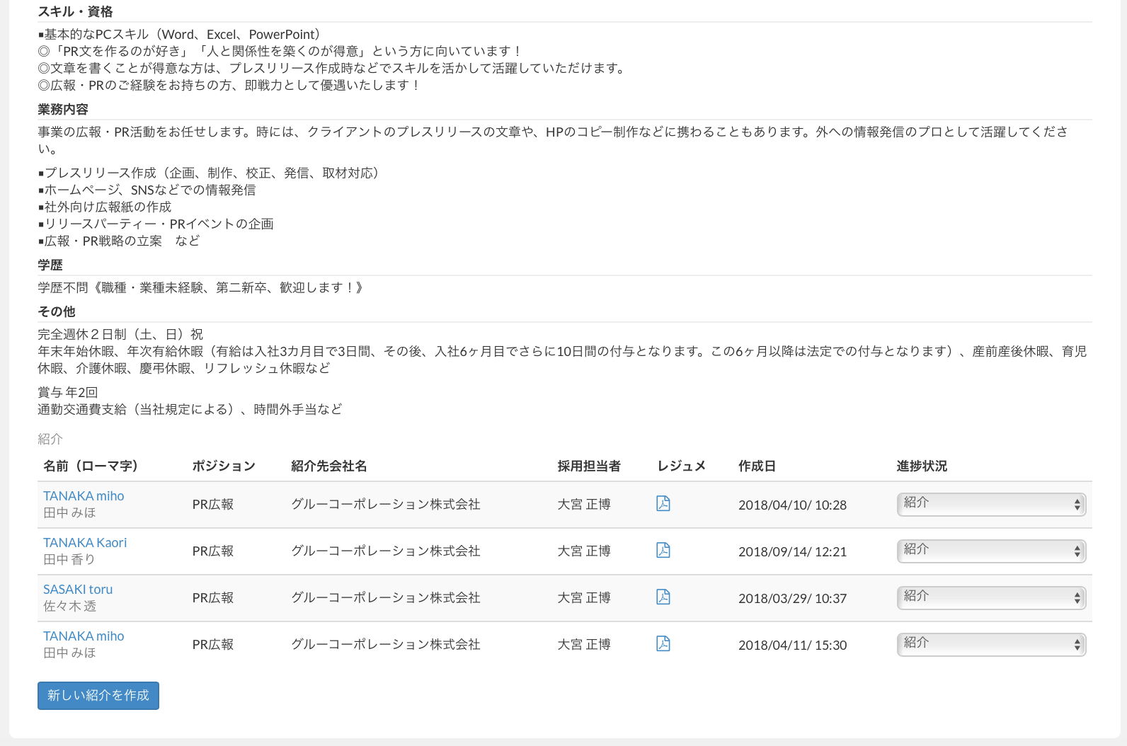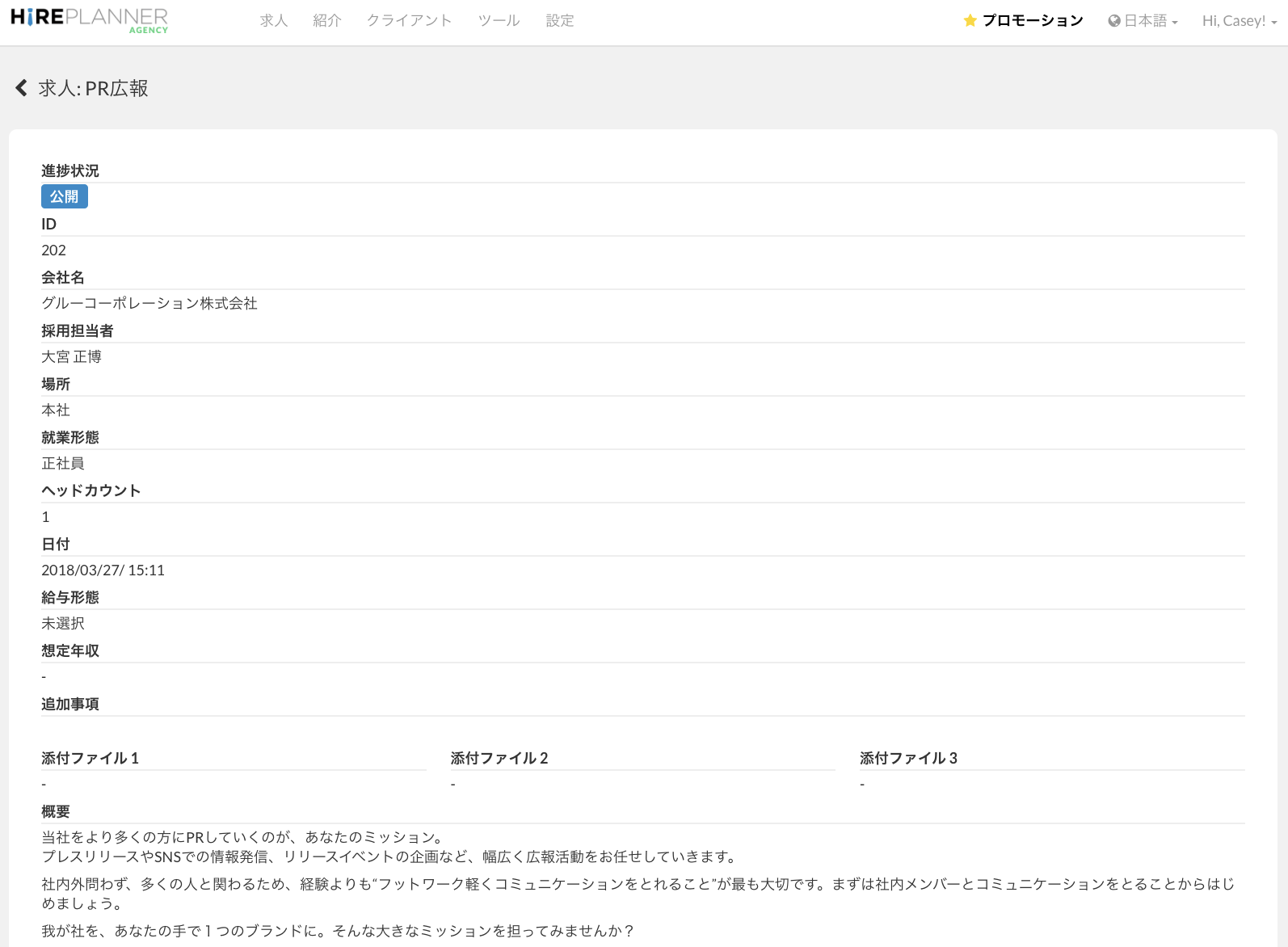 求人のページから「ポジション」名をクリックすると、求人情報の詳細を見ることができます。