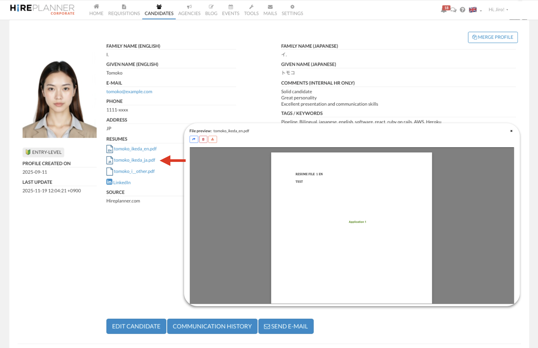 Add updated documents or remove old ones directly from the candidate profiles and/or their application pages.