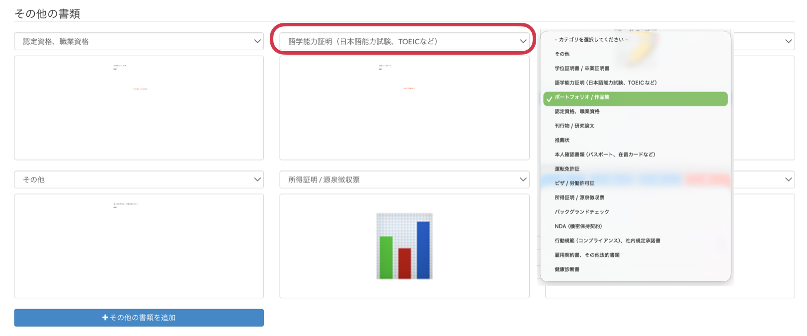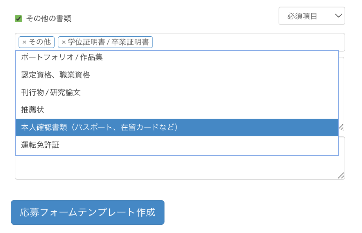 応募フォームテンプレートに「その他書類」を追加