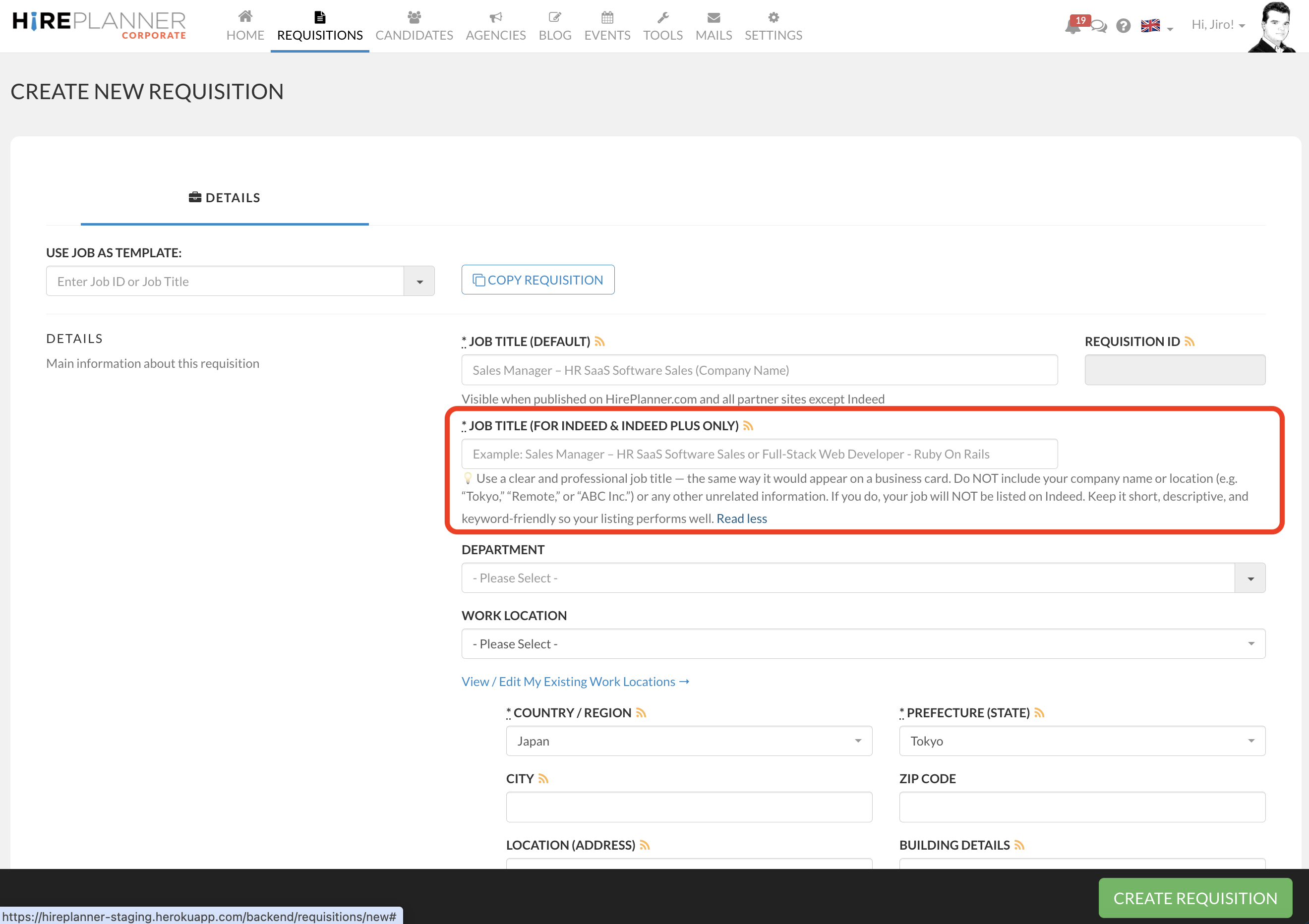 We have added a new Job Title (for Indeed specifically) field to the requisition form.