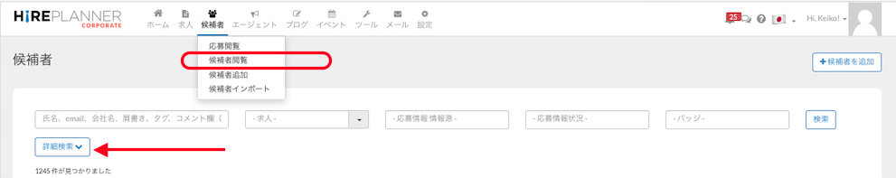 候補者の検索方法