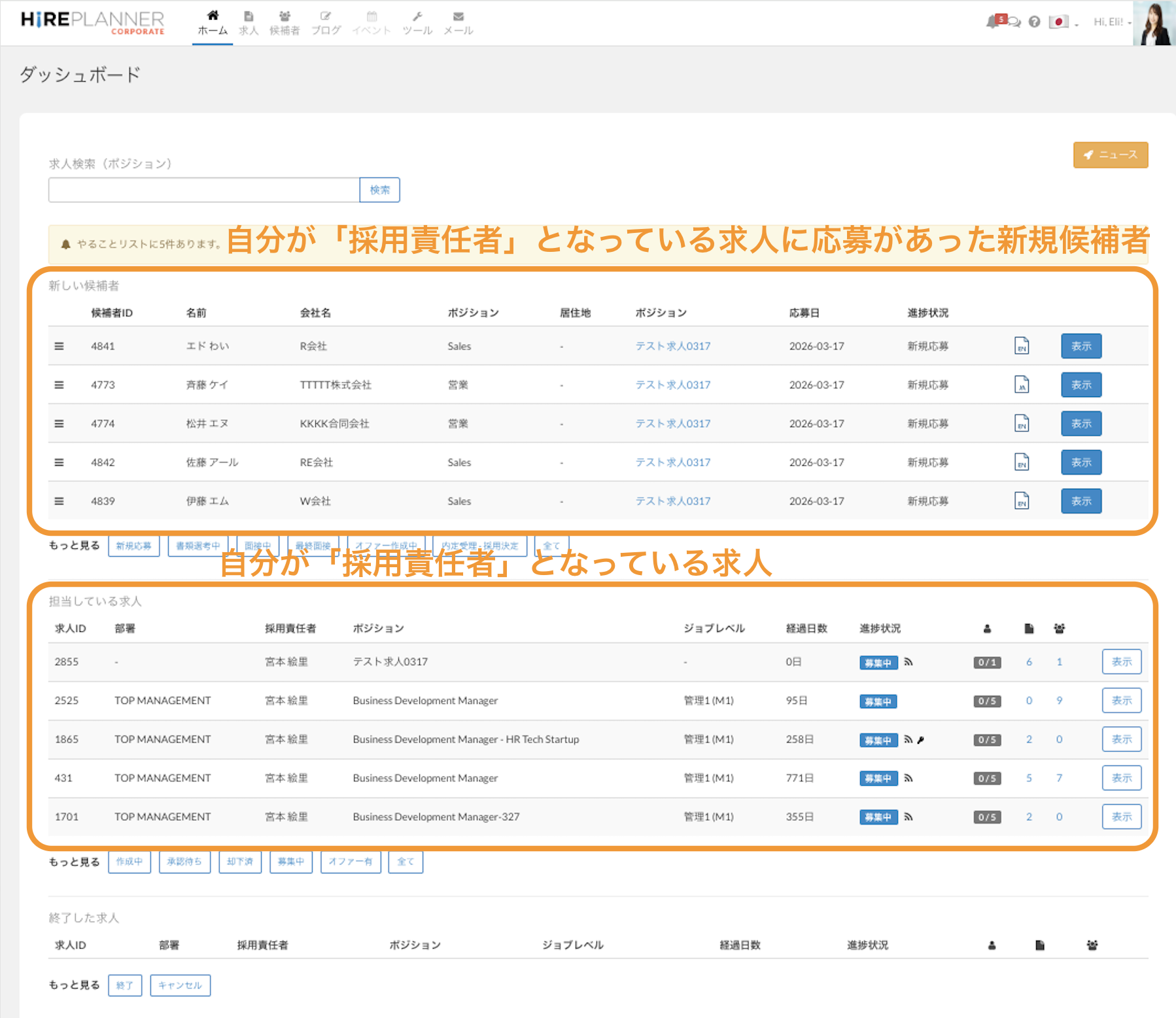 HirePlannerは、各求人に「採用責任者」を設定することができます。